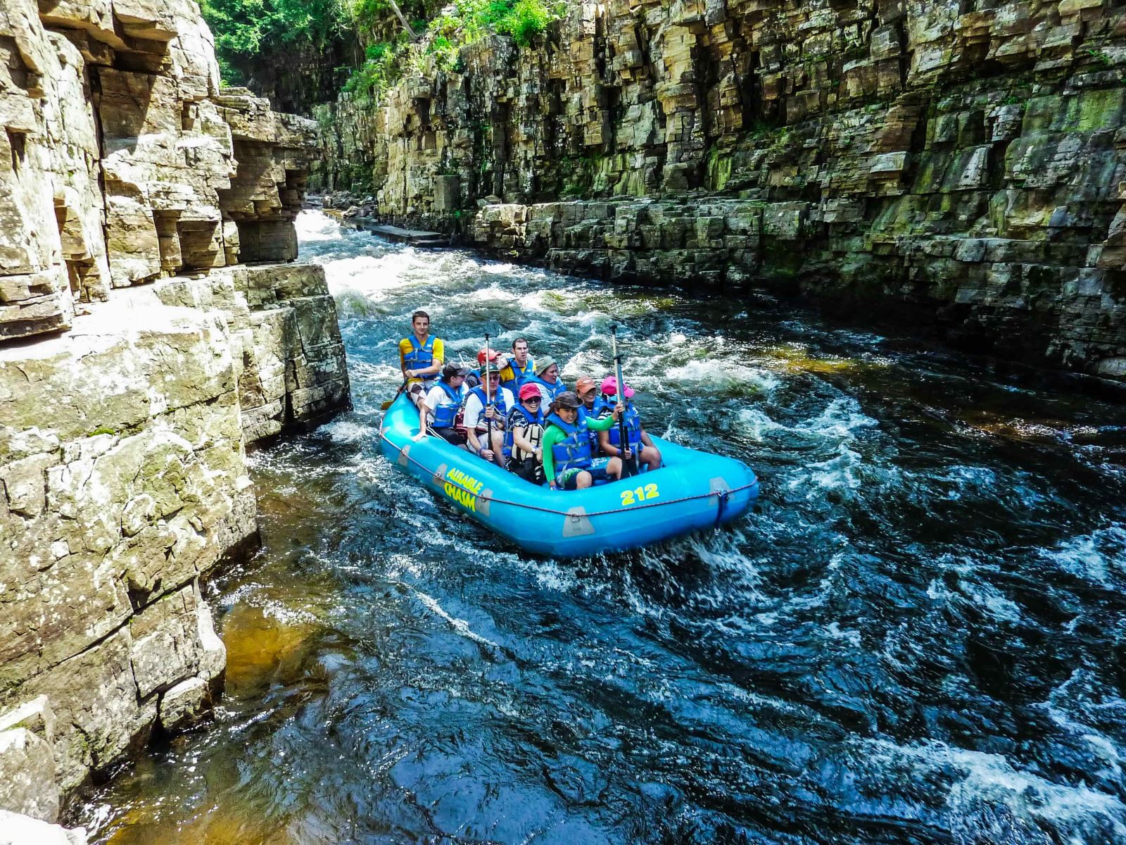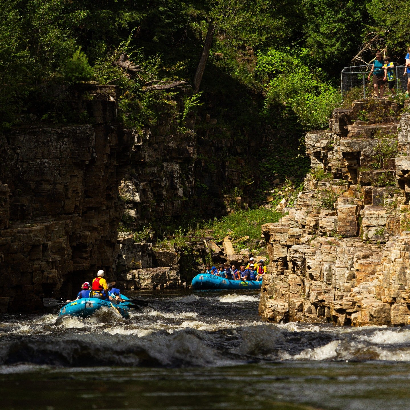 Ausable Chasm offers family-friendly rafting tours on the Ausable River, providing scenic float experiences through the Grand Flume and past unique rock formations.