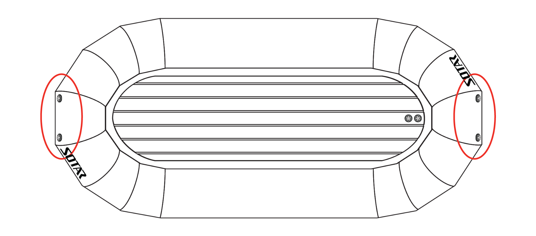 The floor valve is at the bow of the raft, while the exterior tube's pair are mirrored and inverted on the end of the straight sections and the joint A panels.