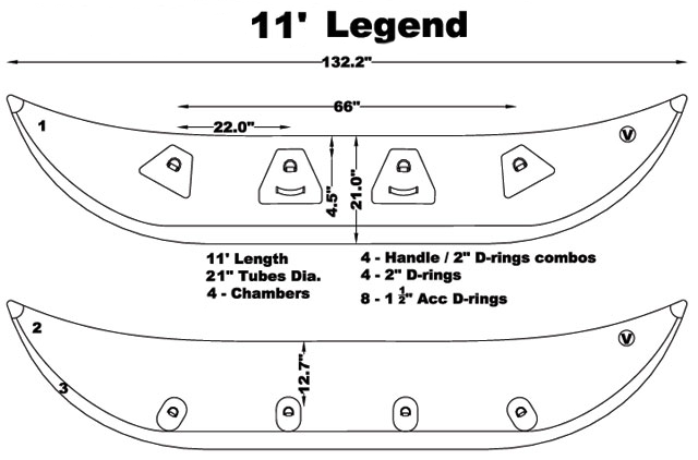These design specifications can be modified on your LEGEND 11 CATARAFT and will modifiy the price: