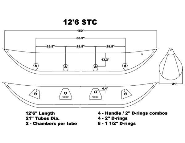 These design specifications can be modified on your STC 12'6 CATARAFT and will modifiy the price: