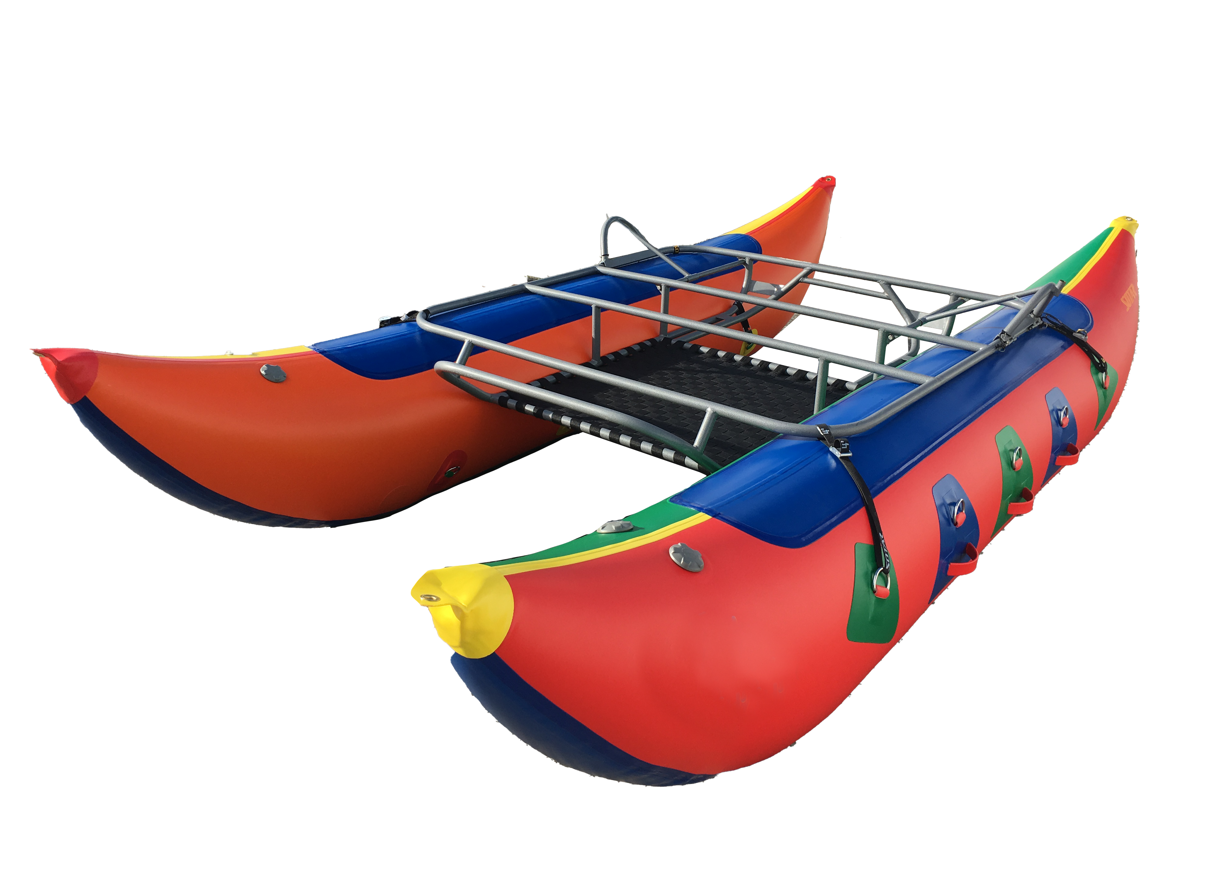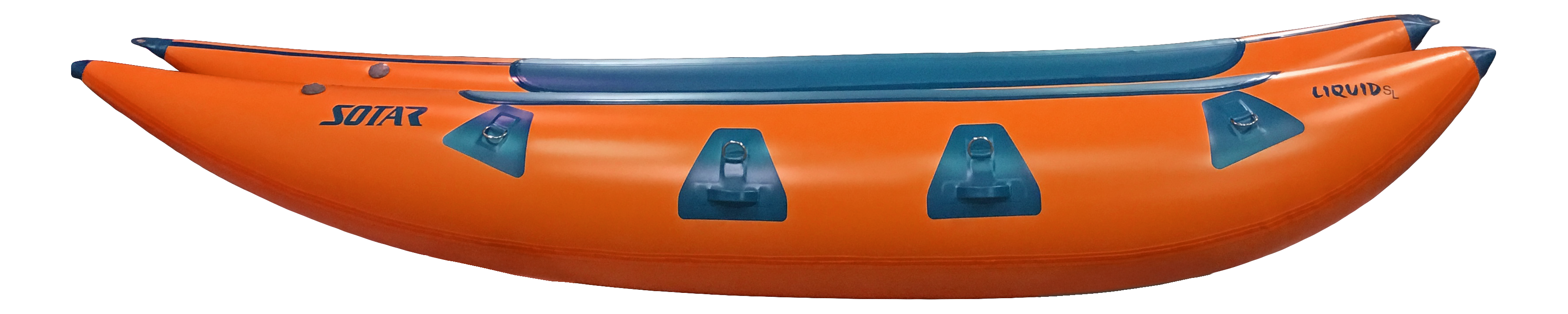 The SL Cataraft has a small footprint on the water for effortless turning, making it fast and agile. It has an extended straight section and modified diminishing tubes in the bow and stern, creating increased internal space.