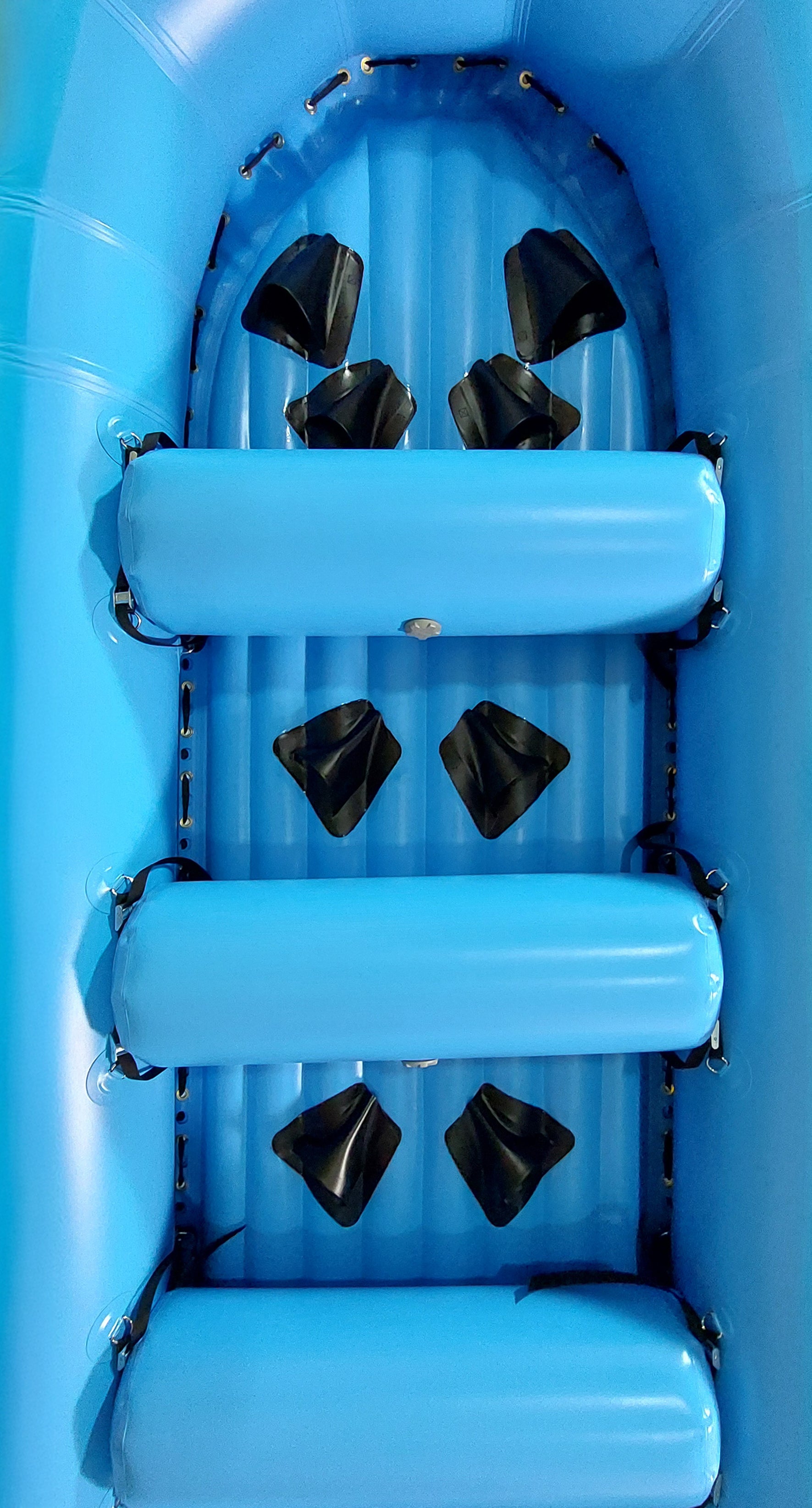 - Foot cups keep paddlers locked into position, reducing the risk of slipping or falling out when the raft hits turbulent waves.
